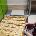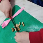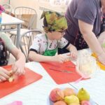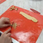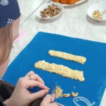 Эти задания потребовали от ребят не только старания, но и ловкости. Пока булочки румянились в духовке, юные кулинары мастерски нарезали овощи для салата и приготовили к нему ароматную заправку. Для хлебных палочек, нужно было измельчить орехи, сформировать из теста жгутик и посыпать ореховой крошкой.