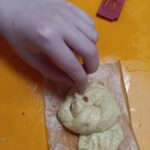 Чтобы сформировать булочки, нужно было разделить тесто на кусочки, скатать из каждого жгутик и завязать его узлом. Верхний кончик узла вытягивался, превращаясь в «клюв», а нижний расплющивался и надрезался ножом, образуя «хвост». Вместо глаз вставлялись кусочки орехов.