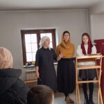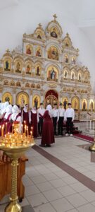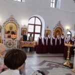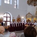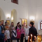 Детей и родителей провели на балкон, где на службах поет приходской хор. Регент хора Вершинина Елизавета Михайловна рассказала о традиции пения в православной храме, что такое камертон, как он звучит, какова роль регента и что такое многоголосие в церковном пении. Церковный хор исполнил несколько песнопений на славянском и греческом языках. Дети и взрослые были очарованы звучанием молитвенных песнопений.