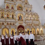 Затем состоялся небольшой концерт духовной музыки. Детский хор старшей группы хора «Артис» ДШИ №1 под руководством Шипенковой Ирины Петровны исполнили церковные песнопения.