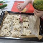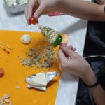Юные поварята освоили приготовление двух оригинальных блюд: слойки с моцареллой в форме бабочки и сырной ёлочки. Последняя представляла собой аппетитную композицию из плавленого сыра в ореховой обсыпке, украшенную томатами черри и свежим огурцом.