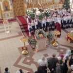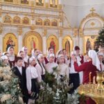 Затем состоялся небольшой концерт духовной музыки. Сводный детский хор старшей и младшей группы хора «Артис» ДШИ №1 под руководством Шипенковой Ирины Петровны исполнил рождественские песнопения.