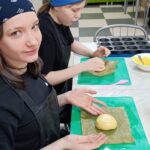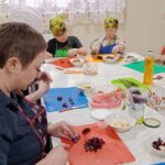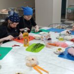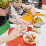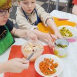 Задания потребовали старания и ловкости. Ребята аккуратно раскатывали тесто для булочек, наполняли их начинкой и формировали ровные шарики. Пока булочки румянились в духовке, юные кулинары мастерски нарезали овощи для винегрета, тщательно смешивая все ингредиенты.