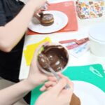Создание шоколадного торта стало настоящим творческим процессом. Каждый ребенок проявил фантазию, используя ореховую шоколадную и арахисовую пасты для крема. Финальным штрихом стало украшение свежими фруктами.