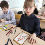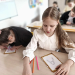 Ребятам 4-го класса педагоги школы предложили стать настоящими мастерами и декорировать первую букву своего имени в старинном стиле, подобно тому, как это делали древние книжники в своих первых рукописных книгах. С каким усердием и талантом юные художники справились с заданием! Каждая буквица стала уникальным произведением искусства. Рисунки были оформлены в выставку.