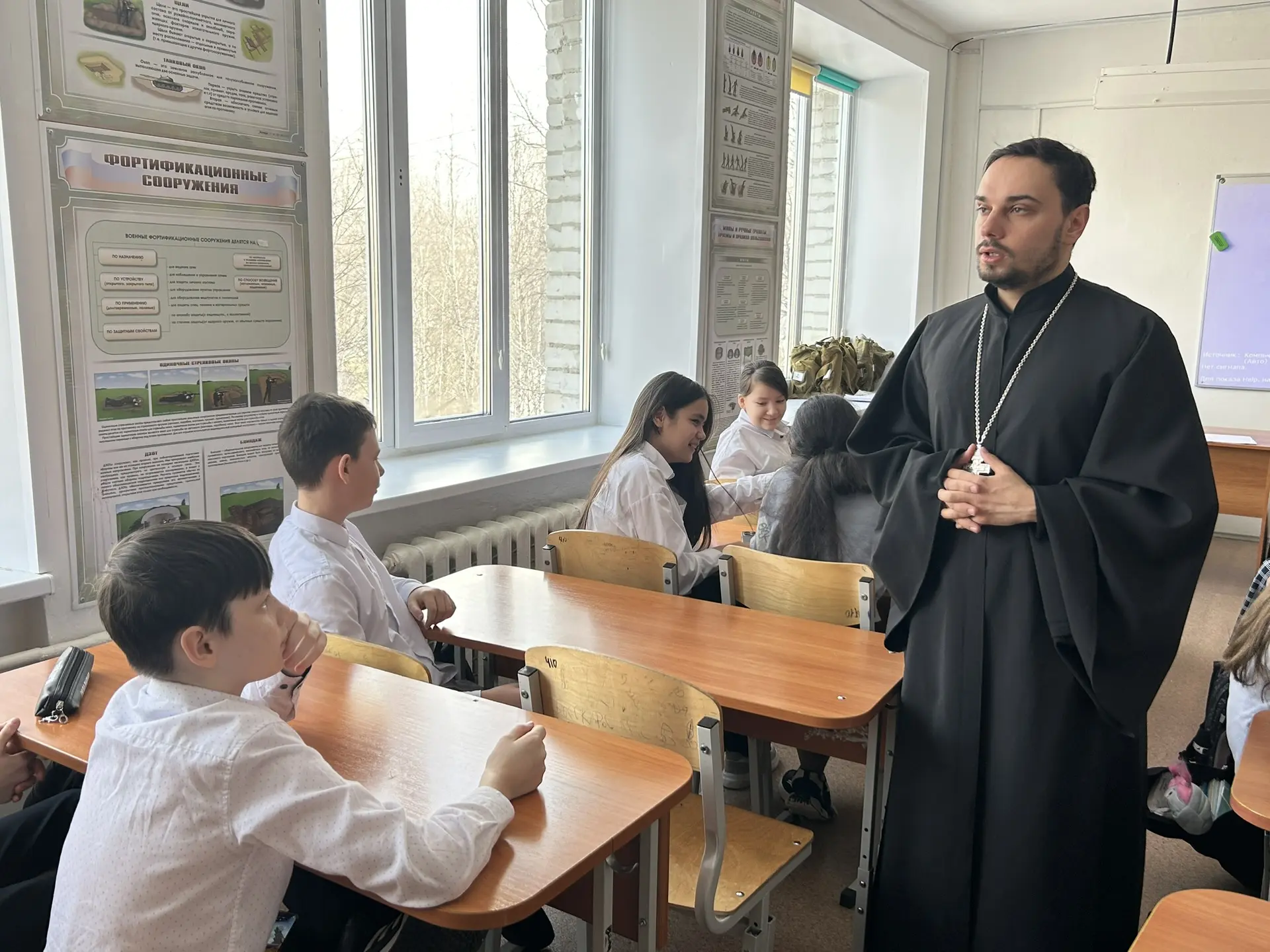 IMG_20260315_181047 — копия Опубликовано 15.03.2026 1920 × 1440 12 марта 2026 года, в преддверии Дня православной книги в МБОУ «СШ №11» г. Нижневартовска штатный клирик храма Великомученика и Целителя Пантелеимона иерей Ярослав Тимаков провел беседу с учениками 5- го класса «Не хлебом единым…». ← Пред. След. →